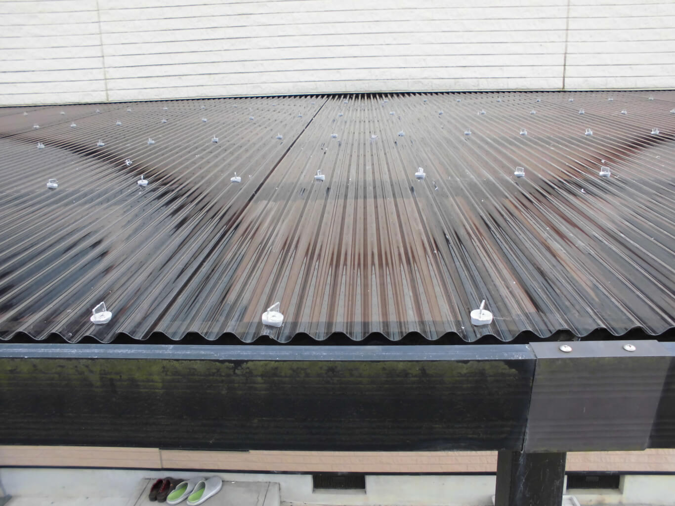 もともと、波板をプラフックで留めてたんですが、今回は、ポリフックで少し丈夫な物に変えて施工しました。