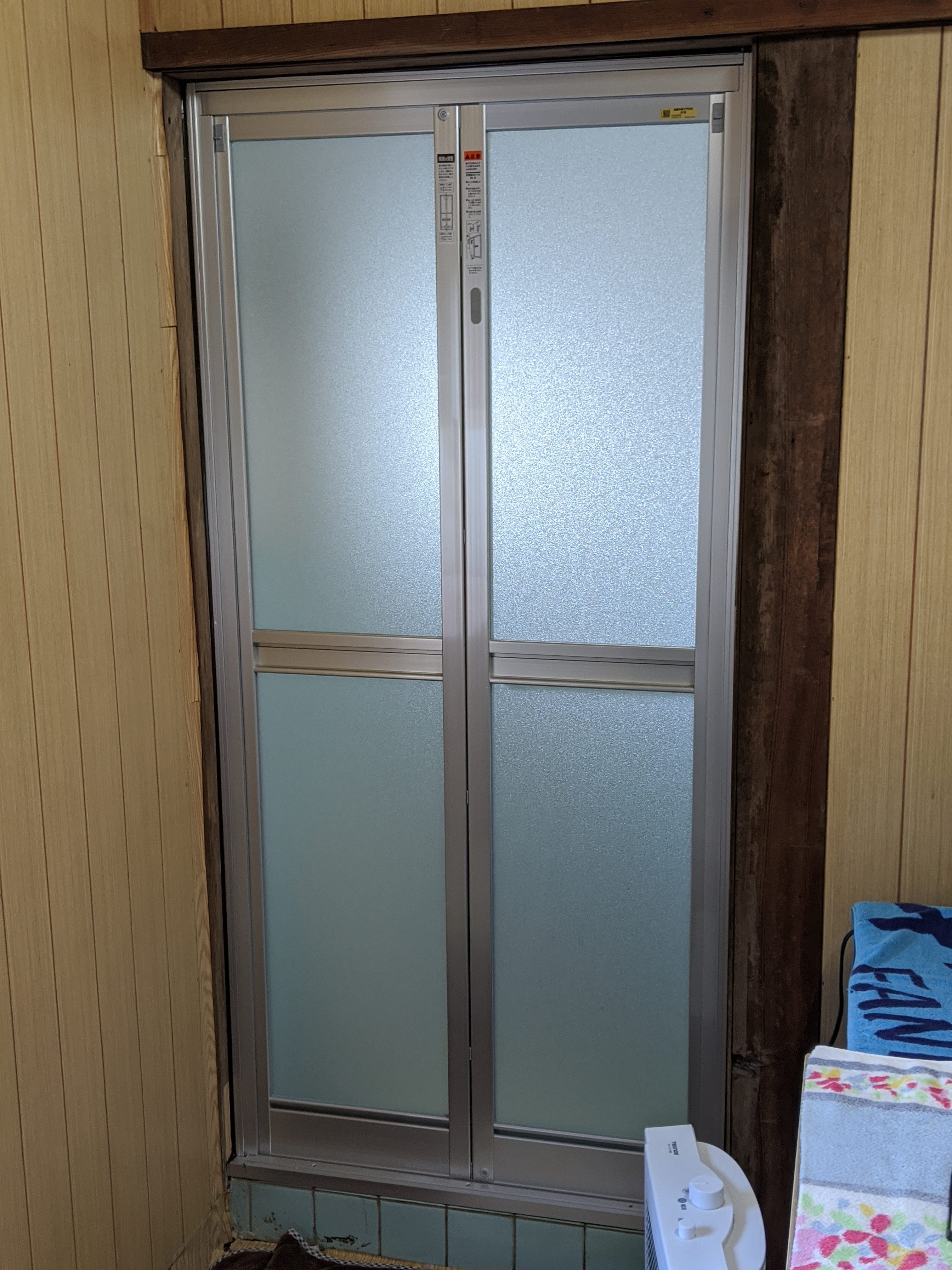 浴室のドアは以外に傾きは少なく、まだ施工もしやすかったのですが、掃き出し窓は、以前取り付けた職人さんが、柱を30ミリ程しゃくってたので、サッシを作る際の採寸や取付けする時に少し苦労をしました。