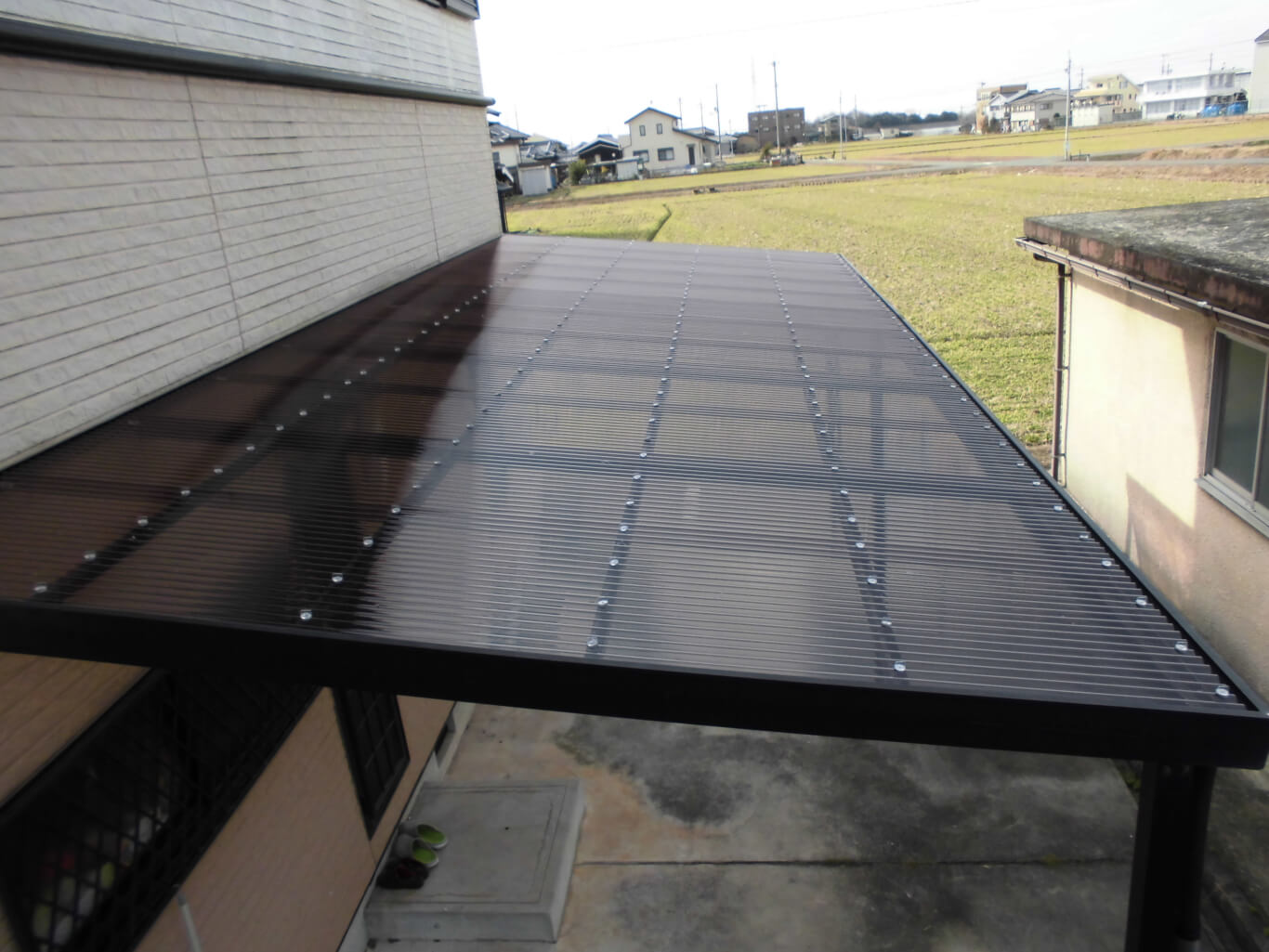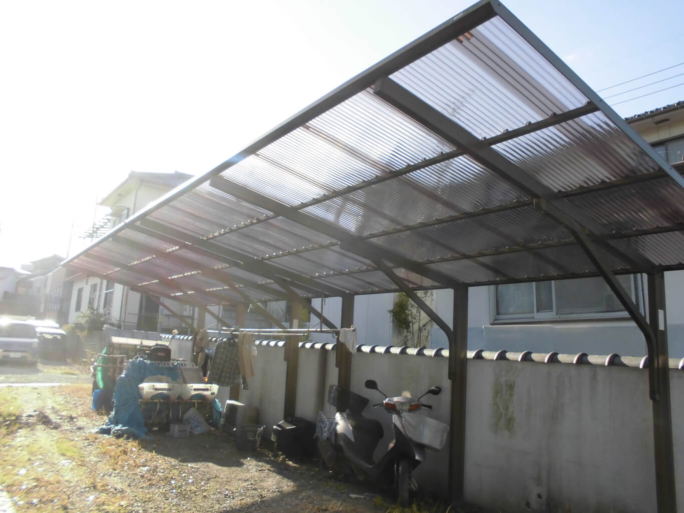 2019.07.21 姫路市 O様邸 バルコニー工事 バルコニーが完成して大変喜んでいただきした。 信用していただいたので、別の工事を追加でいただきました。 2019.07.21 姫路市 O様邸 バルコニー工事 施工前 以前、加西市でお世話になった娘さんが姫路に住んではるんですが、バルコニーが木製で腐食してアルミのバルコニーに取替えたいと相談を受けて見積させて頂き工事の依頼を受けました。 2019.06.22 加古郡稲美町 M様邸 テラス波板工事 完工 もともと、波板をプラフックで留めてたんですが、今回は、ポリフックで少し丈夫な物に変えて施工しました。 近所ということもあり、安心していただけて、次回も何かあれば頼むわなって感じで嬉しかったです。 2019.06.22 加古郡稲美町 M様邸 テラス波板工事 チラシを見ていただいて、ご近所ということもあり気軽にお電話いただいて見積になり工事をする事になりました。 2019.06.15 神戸市西区 K様邸 テラス工事 完工 2Fベランダのテラスは、屋根の形や高さが干渉してくることがあるので新設するテラスの高さや大きさを妥協しなければならない時がありますが、今回はK様のご希望通りに設置する事が出来て大変良かったです。 2019.06.15 神戸市西区 K様邸 テラス工事 施工前 新居を買われたお客さんが、新築には最初テラスが設置されて無い事が多く、困ってたところに当店のチラシを見ていただいたらしくて、見積させていただき、値段も気に入ってもらえたので工事させていただく事になりました。 2019.06.10 加古郡稲美町 H様邸 カーポート波板工事 完工 今回少し丈夫にして欲しいとの事でしたので、全ての留めるフックをビス固定に替える工事をしましたので、丈夫になったと大変喜んでいただきました。 何度も仕事の車が壊れたって電話して現場まで来て助けてもらってるので、逆の立場で喜んでもらえたのがホンマに嬉しかったです。 2019.06.10 加古郡稲美町 H様邸 カーポート波板工事 施工前 いつもお世話になってる車屋さんが、台風で波板が全て飛んでしまったので急ぎでなくてよいので直して欲しいと連絡がありました。 普段から付き合いがあり、また、地元での仕事の依頼はやはり嬉しいものです。 2019.06.08 明石市 T様邸 ポリカ波板・雨樋工事 完工 瓦棒と雨樋、ポリカ波板との隙間がほとんどなくて、かなりやり難くて通常の工事の倍以上かかりましたが、何とか完工しました。 お客さんも綺麗になったと大変喜んでくれたので、ホンマに良かったです。 2019.06.08 明石市 T様邸 ポリカ波板・雨樋工事 施工前 以前屋根工事でお世話になったお客さんが、小さい工事で悪いんやけどって連絡があったのですぐに向かいました。 台風いたんでしまって困ってるとのことでしたので、出来るだけ早く工事を出来るようにしますと二つ返事で受けさせていただきました。