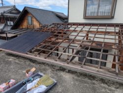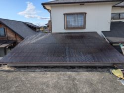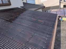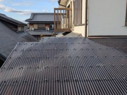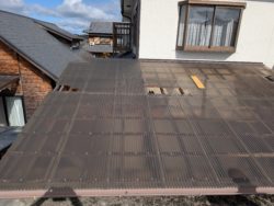 7〜8年くらい前に雨樋が外れてるからとご連絡いただき、ついでだから外壁塗装もしてもらいたいとお付き合いが始まった加古川市のT様が、今回倉庫の屋根の波板が穴が空いて大変な事になってるから直して欲しいとの依頼があり施工させていただきました。